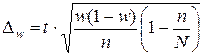 Для вероятности p=0.9 коэффициент доверия t=1.645 (n=285; N=2000). Найдем предельную ошибку при данных условиях.