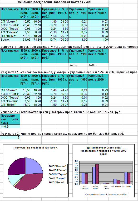 Результаты выполнения практической части работы находятся в файле «работа.xls», а также приводится ниже.