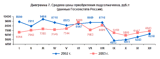 В прошедшем году уровень цен на подсолнечник был ниже, чем в 2002 г.