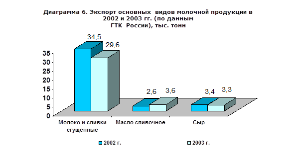 В 2003 году было импортировано существенно больше молочной продукции, что в условиях сокращения собственного производства привело к росту доли импорта в потреблении молока и молокопродуктов.