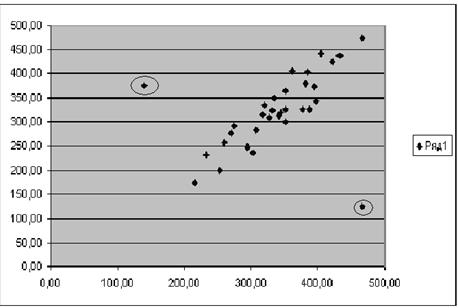 В результате выполнения этих действий на рабочем листе Excel появится диаграмма рассеяния (рис. 1).