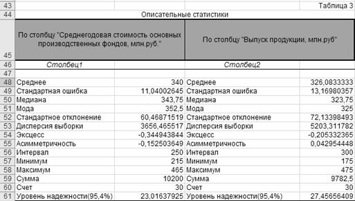3. Приведение выходной таблицы и диаграммы к виду, принятому в статистике.