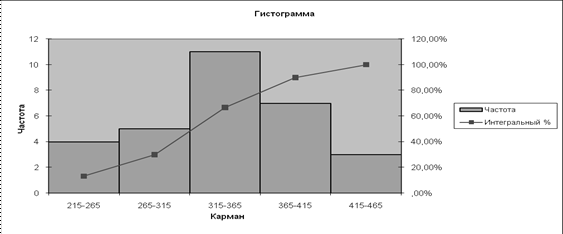 Для исходного примера гистограмма и кумулята выглядят следующим образом