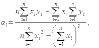Полученная система может быть решена известным из школьного курса методом Гаусса. Искомые параметры системы из двух нормальных уравнений можно вычислить и непосредственно с помощью последовательного использования нижеприведенных формул: