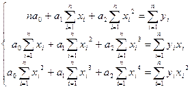 Неизвестные параметры а0, а1, а2 находятся в результате решения следующей системы уравнений: