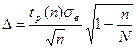 обратной зависимости от объема выборки n. Следовательно, при увеличении n значение Δ уменьшается, так как