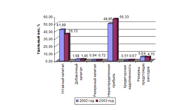 - снижение доли уставного капитала на 5,86%, добавочного капитала на 0,23% и резервного капитала на 0,12% объясняется увеличением доли нераспределенной прибыли, которая увеличилась на 6,38%;