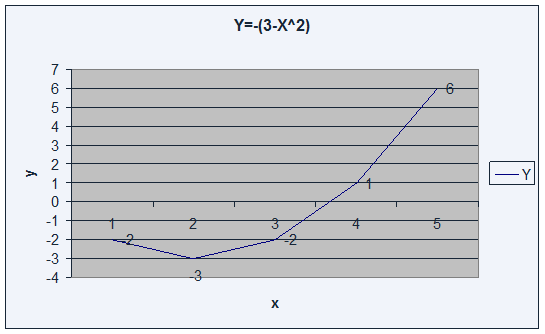программе Microsoft Excel создаем таблицу со значениями Х от -1 до 3, и