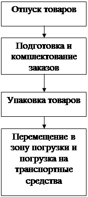 Далее следуют операции, связанные с отпуском материалов; перемещение их к участку комплектования заказов; комплектование заказов; подготовка материалов к отпуску (переупаковка, укладка на поддоны, в контейнеры); экспедиционные операции по отправке материалов покупателям (формирование маршрутов, погрузка транспортных средств, централизованная доставка материалов); сдача материалов получателям.