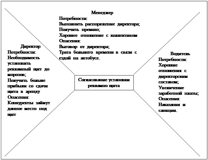 Далее была представлена конкретная конфликтная ситуация, причиной которой явились неправильные информационные потоки. Причина конфликта носит объективный характер – отсутствие осведомлённости лиц, задействованных в процесс согласованию, об уровне важности этой работы, а также отсутствие чётких официальных приказов директора в отношении водителя и зам. директора.
