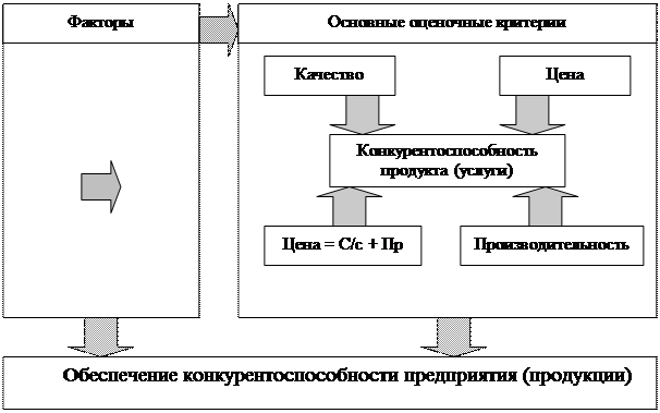 Роль человеческих ресурсов в обеспечении успешной деятельности, конкурентоспособности предприятия и продукции чрезвычайно высока. На рис.1. отражены основные оценочные критерии и факторы обеспечения конкурентоспособности продукта (из сферы кадрового менеджмента).