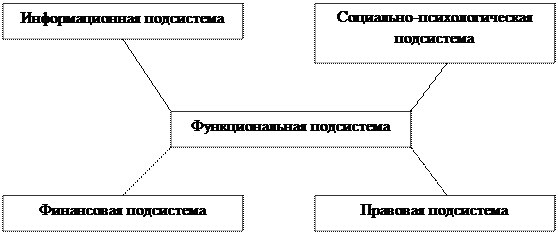 Система управления персоналом, как и любая другая система, имеет центральное ядро, основой которого в данном случае является функциональная подсистема, базирующаяся на четырех обеспечивающих подсистемах (рис.2).