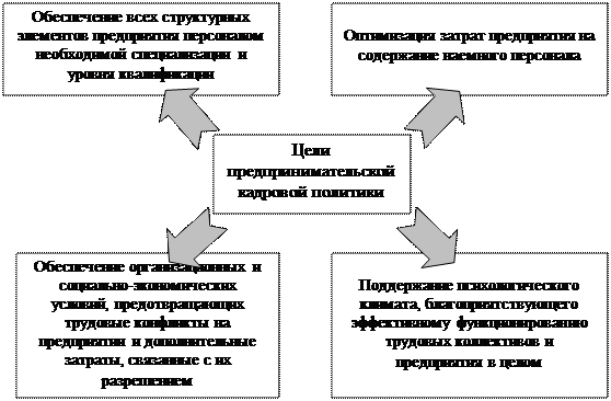 В этих условиях особо актуальна концепция предпринимательской кадровой политики на предприятии. Предпринимательская кадровая политика – это кадровая политика, направленная на развитие предприятия в сфере кадрового менеджмента, а также на повышение эффективности антикризисного управления предприятия в целом, стратегической целью которой является сохранение наиболее квалифицированного и адаптируемого к условиям рынка персонала.