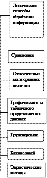 Среди них можно выделить традиционные логические способы, которые широко применяются и в других дисциплинах для обработки и изучения информации (сравнение, графический, балансовый, средних и относительных величин, аналитических группировок, эвристические методы решения экономических задач на основании интуиции, прошлого опыта, экспертных оценок специалистов).
