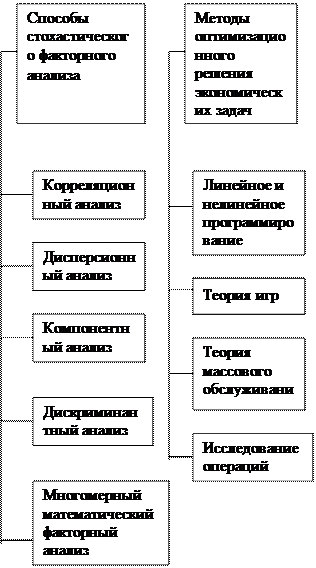 Для изучения влияния факторов на результаты хозяйствования и подсчета резервов в анализе применяются такие способы, как цепные постановки, абсолютные и относительные разницы, интегральный метод, корреляционный, компонентный, методы линейного, выпуклого программирования, теория массового обслуживания, теория игр, исследования операций и другие. Применение тех или иных способов зависит от цели и глубины анализа, объекта исследования, технических возможностей выполнения расчетов.