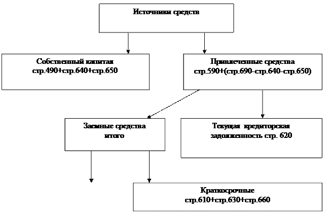 Способность предприятия отвечать по своим долгосрочным финансовым обязательствам составляет суть оценки финансовой устойчивости предприятия. Для расчетов аналитических показателей могут использоваться данные обо всех источниках, о долгосрочных источниках, об источниках финансового характера, под которыми понимают собственный капитал, банковские кредиты и займы (долгосрочные и краткосрочные). Классификация источников средств для анализа финансовой устойчивости предприятия приведена на рисунке 5.
