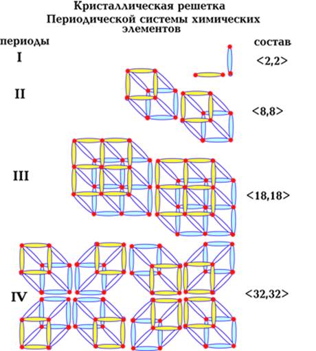 Этот рисунок дает четкие представления о строго эволюционном формировании Периодической таблицы, в полном соответствии с законами сохранения симметрии. Все оболочки, подоболочки оказываются здесь строго взаимосвязаны и взаимообусловлены. Каждый химический элемент занимает в этом многомерном и многоуровневом "кубе" строго определенную эволюционную нишу.
