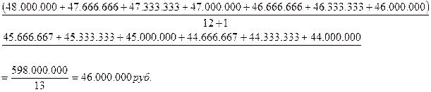 Среднегодовая стоимость имущества, признаваемого объектом налогообложения, за налоговый период определяется как частное от деления суммы, полученной в результате сложения величин остаточной стоимости имущества на 1-е число каждого месяца налогового периода и последнее число налогового периода, на число месяцев в налоговом периоде, увеличенное на единицу.