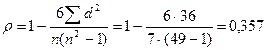 Разность рангов d |