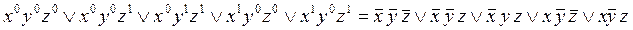Так как таблицы истинности для f(x,y,z) и