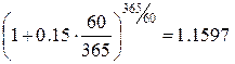 4. Рассчитайте годовую эффективную ставку процента для срочного вклада на 60 дней под 15% годовых.