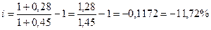 22. Номинальная годовая эффективная ставка процента на денежном рынке составляет 28%. Чему равна реальная ставка процента, если рост среднего уровня цен за год составляет: а) 16%; б) 25%; в) 45%.