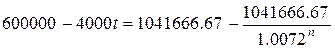 Обозначим t – количество месяцев, в течении которых семья накапливает деньги. После этого они берут кредит, в размере (600000–4000t) рублей. Обозначим n – число месяцев в течении которых они погасят кредит. Получаем соотношение: