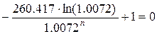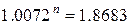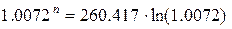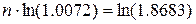 При t=29 объем займа составит 484000 рублей. Решим уравнение относительно n.