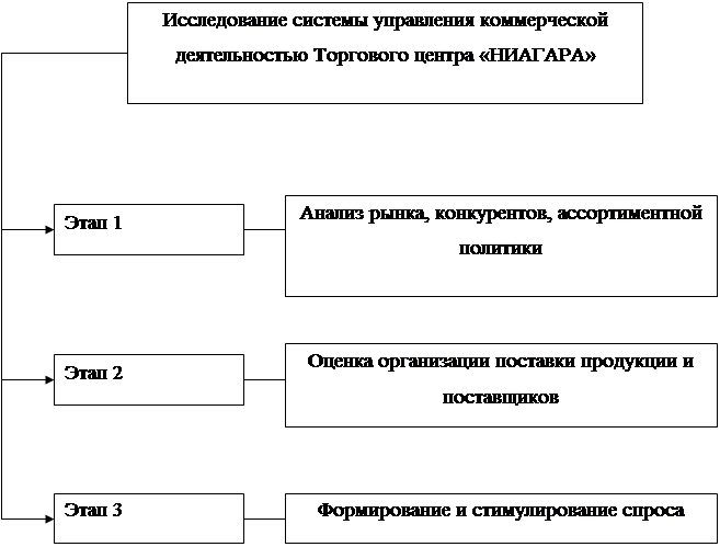 Этапы исследование системы управления коммерческой деятельностью Торгового центра «НИАГАРА»