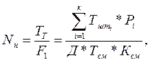 где: Nн и Nн.м – необходимое количество станков в условиях одностаночного и многостаночного обслуживания, шт.