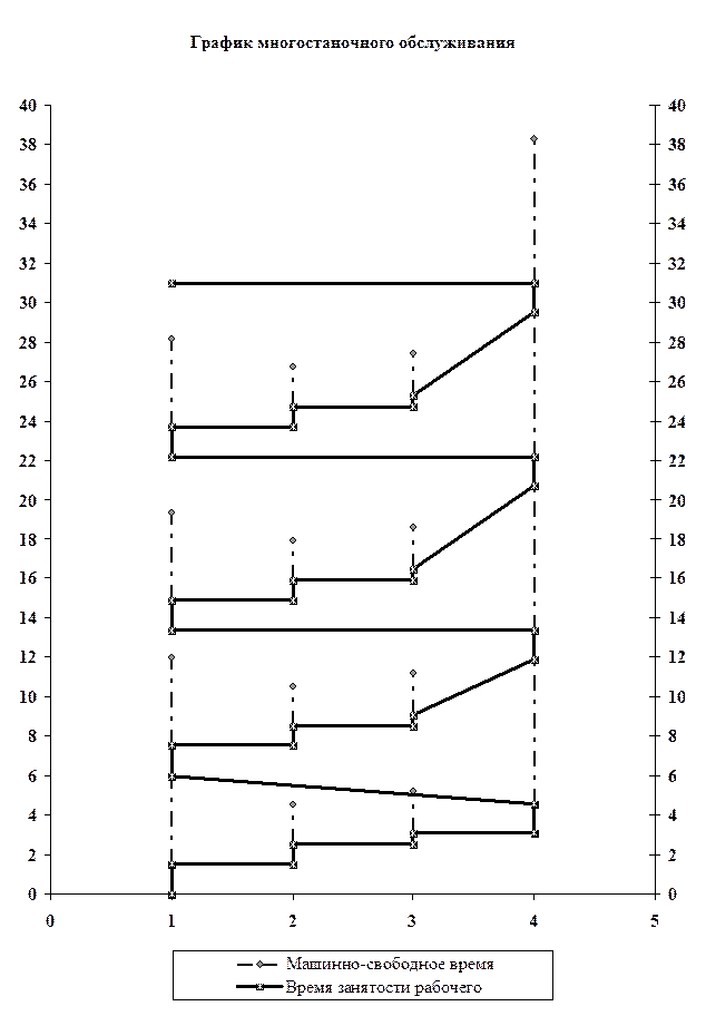 Многостаночное обслуживание является одной из форм кооперации труда. Возможность такой работы обусловлена совпадением времени выполнения ручных приемов на одном станке (машине) со временем машинной работы на других станках (машинах). Причем возможности многостаночного обслуживания могут быть расширены за счет повышения технической оснащенности производства, комплексной механизации и автоматизации, перепланировки оборудования с целью сокращения пути перемещения рабочего от одного станка к другому и других организационно-технических мероприятий.