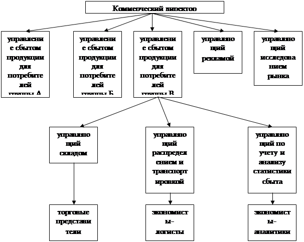 В состав коммерческих служб включаются торговые или товарные отделы, отделы по изучению спроса или конъюнктуры торговли, коммерческие павильоны оптовых баз, залы товарных образцов и другие торговые подразделения предприятий. Повышение уровня коммерческой работы по управлению коммерческими функциями требует постоянного совершенствования ее технологии, особенно использования новой техники управления, АСУ, автоматизированных рабочих мест, компьютеризации управления коммерческими процессами.