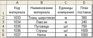 Лист 2 переименуем в лист с названием Справочник материалов. Создадим на рабочем листе таблицу справочника материалов и заполним ее данными (Рис. 2)