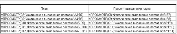 Рис. 5.2 Таблица «Фактическое выполнение поставок» с введенными формулами