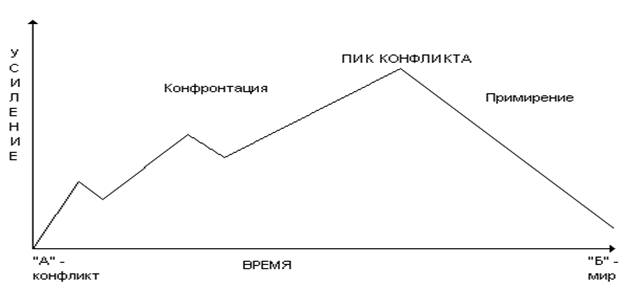 · В связи с этим второй участник предпринимает ответные действия, напрвленные против первого участника. Только с этого момента можно считать, что конфликт начался.
