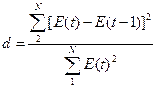 · Независимости уровней ряда остатков по d-критерию (критические значения d1 = 1,10 и d2 = 1,37) и по первому коэффициенту автокорреляции при критическом значении r1=0,32.