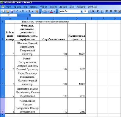 6.13. Ввести заголовок таблицы «Ведомость начисленной заработной платы», ввести исходные данные