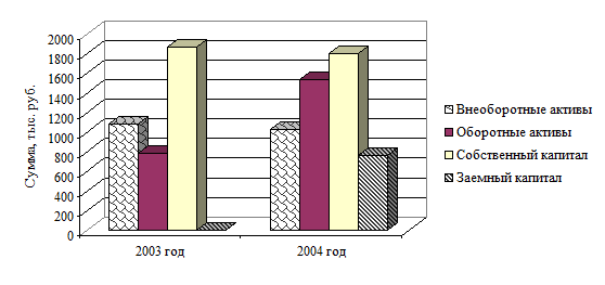 За 2003 год значительные изменения произошли по таким статьям бухгалтерского баланса, как расходы будущих периодов – увеличились на 270 тыс. руб., возросла дебиторская задолженность, в частности задолженность покупателей и заказчиков на 521 тыс. руб., предприятие осуществило краткосрочные финансовые вложения на сумму 68 тыс. руб. ООО «Фараон» получило убыток в размере 72 тыс. руб., но в результате нераспределенной прибыли прошлого года в размере 570 тыс. руб., убыток отчетного года был покрыт. У предприятия в прошлом году не было краткосрочной кредиторской задолженности. В течение 2003 года появилась задолженность перед бюджетом по налогам и сборам на сумму 60 тыс. руб., задолженности по оплате труда нет, хотя существует задолженность перед внебюджетными фондами на сумму 96 тыс. руб., задолженность остальным кредиторам составляет 605 тыс. руб.
