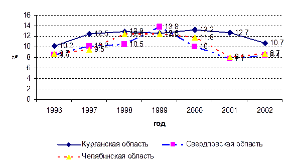 Экономический потенциал Уральского федерального округа: Курсовая работа. – Челябинск, ЮУрГУ, 2004. – 41 с.