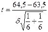 δ – среднее квадратическое отклонение разности средних величин, определяемое по формуле (6)