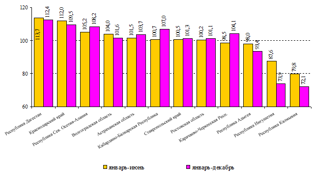 Первая группа – регионы-“лидеры” – здесь наблюдается положительный прирост населения, это Ингушетия и Дагестан. Во вторую, промежуточную группу можно отнести Кабардино-Балкарскую республику, Карачаево-Черкесскую республику, Республику Северную Осетию-Аланию и республику Калмыкию, в которых убыль населения наблюдается относительно недавно. И наконец к третьей группе относятся регионы – “аутсайдеры” в демографическом развитии. Это прежде всего русскоязычные регионы (Ставропольский и Краснодарский края, Ростовская, Волгоградская и Астраханская области, республика Адыгея), где депопуляция наступила с небольшим отставанием от Росси в целом.