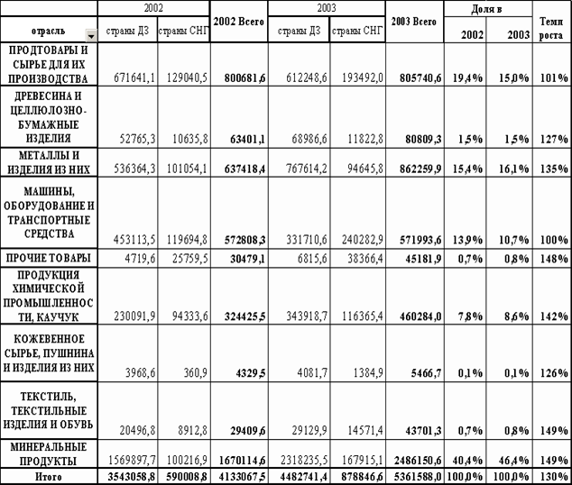 Товарооборот по оформленным таможнями ЮТУ товарам в 2002 году составил 17,4 млрд. долл. (15, 6 – в предыдущем, прирост 112%). Экспорт составил 13,3 млрд. долл., импорт – 4,1 млрд. долл. (в 2001 году - 11,7 и 3,9 соответственно). При этом товарооборот по субъектам ЮФО в 2002 г. достиг 6,4 млрд. долл. (экспорт 4,1 млрд. долл., импорт 2,3 млрд. долл.). Данные 2001 года – 5,5 млрд. долл. (116 % пророст), экспорт – 3,6 млрд. долл., импорт – 1,9 млрд. долларов. Внешнеторговые отношения связывают регион с партнерами из более ста стран мира.