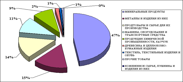 К продукции экспорта из Южного федерального округа относятся уголь, нефть, газ, электроэнергия, хлеб, овощи, фрукты, консервы, вино, рыба, овощебахчевые, строительные материалы, продукция машиностроения.