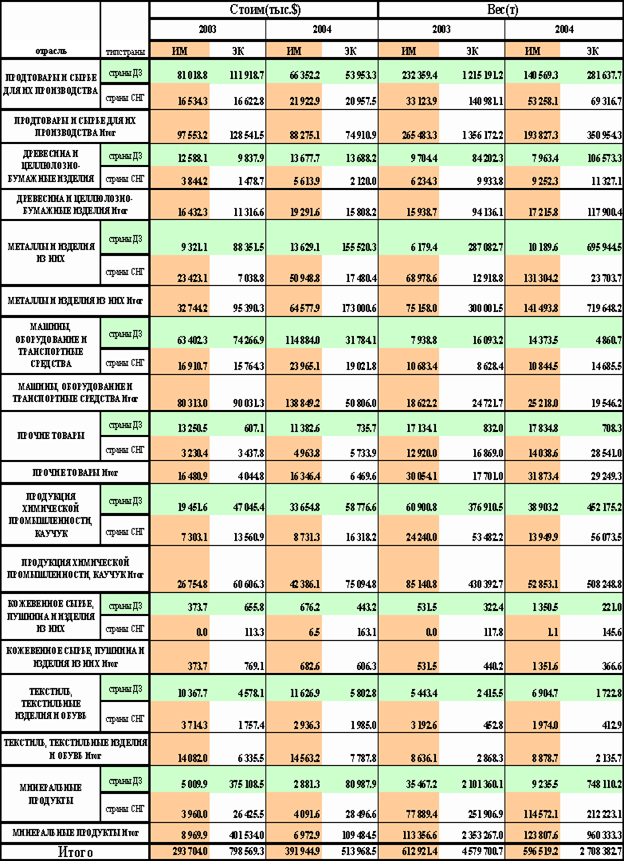 Импортируется в Южный ФО лес и пиломатериалы, автомобили, различное оборудование, продукцию легкой промышленности.