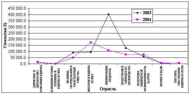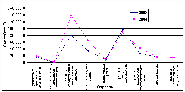 Товарная структура внешней торговли ЮФО в январе-феврале 2003-2004г.г.
