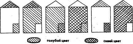 Учащимся предлагается нарисовать 6 домиков, взять цветные карандаши и показать, как нужно выполнить работу малярам. Ответ изображен на рисунке 2.