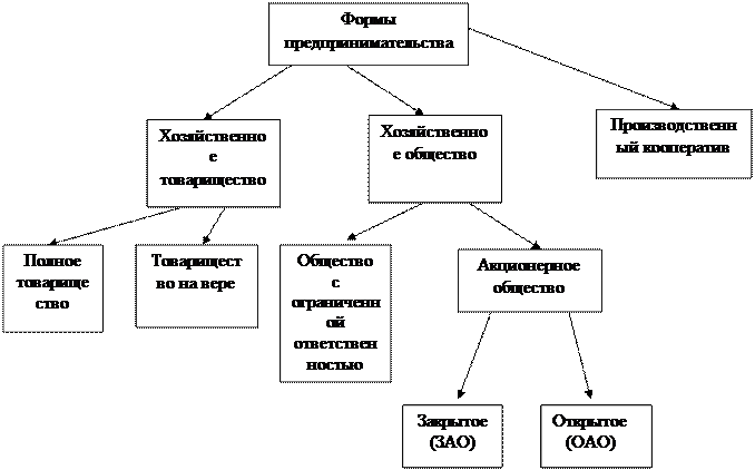 Согласно Гражданскому Кодексу в РФ существуют следующие организационно-правовые формы предприятий: хозяйственные товарищества, общества и производственные кооперативы[3].