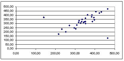 Среднее значение среднегодовой стоимости основных производственных фондов 340 млн.руб. С вероятностью 0,954 среднее значение ОПФ буден находиться в пределах от 316 до 363 млн.руб. При этом средний выпуск продукции 326 млн.руб., с той же вероятностью он будет находиться в пределах от 298 до 353 млн.руб.
