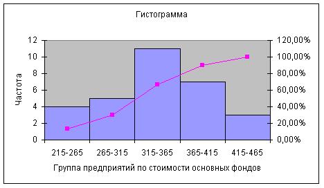 Задача 5. Построим интервальный вариационный ряд и гистограмму распределения единиц совокупности по признаку Среднегодовая стоимость основных производственных фондов (таб. 7) и установим характер (тип) этого распределения.