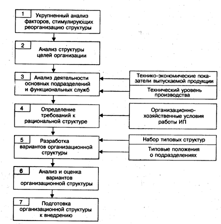 Решение задач, стоящих перед ИП (самостоятельными или входящими в объединения, концерны и другие оргформы высокого уровня), осуществляется в рамках тех или иных организационных структур. Они предусматривают наличие определенного состава подразделений иди отдельных функционеров, находящихся в установленных взаимосвязях и взаимодействии, и в рамках внутриструктурной деятельности того или иного вида, направленной на выполнение определенных функций и на достижение частных и генеральных целей функционирования ИП [3].